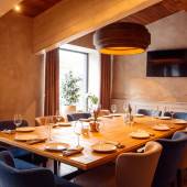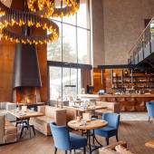The first floor of the restaurant is an atmospheric spacious hall with a large fireplace, near which it is so nice to warm up on cold winter days or enjoy the romance of summer evenings. There is also a business card of the restaurant - a panoramic terrace with huge windows and a show kitchen, which opens the curtain on the mystery of cooking and the process of cooking real Italian cheese. You can enjoy the view of the lake and the pine forest regardless of the weather and season.